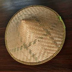 Topi tradisional ini berbentuk kerucut dengan pinggiran lebar, terbuat dari anyaman bambu yang kuat dan ringan. Desainnya khas Asia, sering digunakan untuk melindungi dari panas matahari saat bekerja di ladang, kebun, dan sawah atau beraktivitas di luar ruangan.