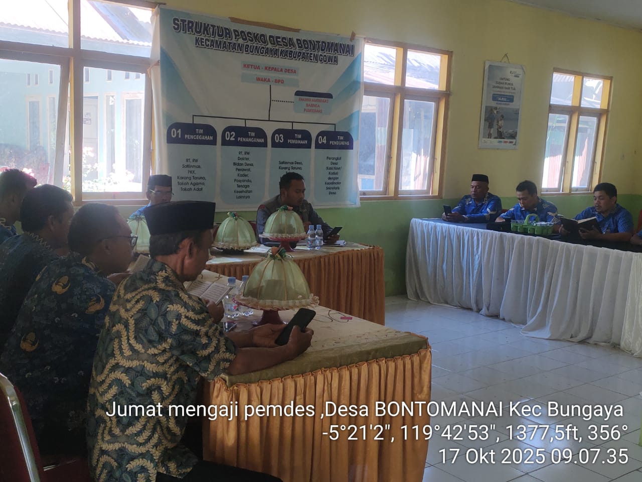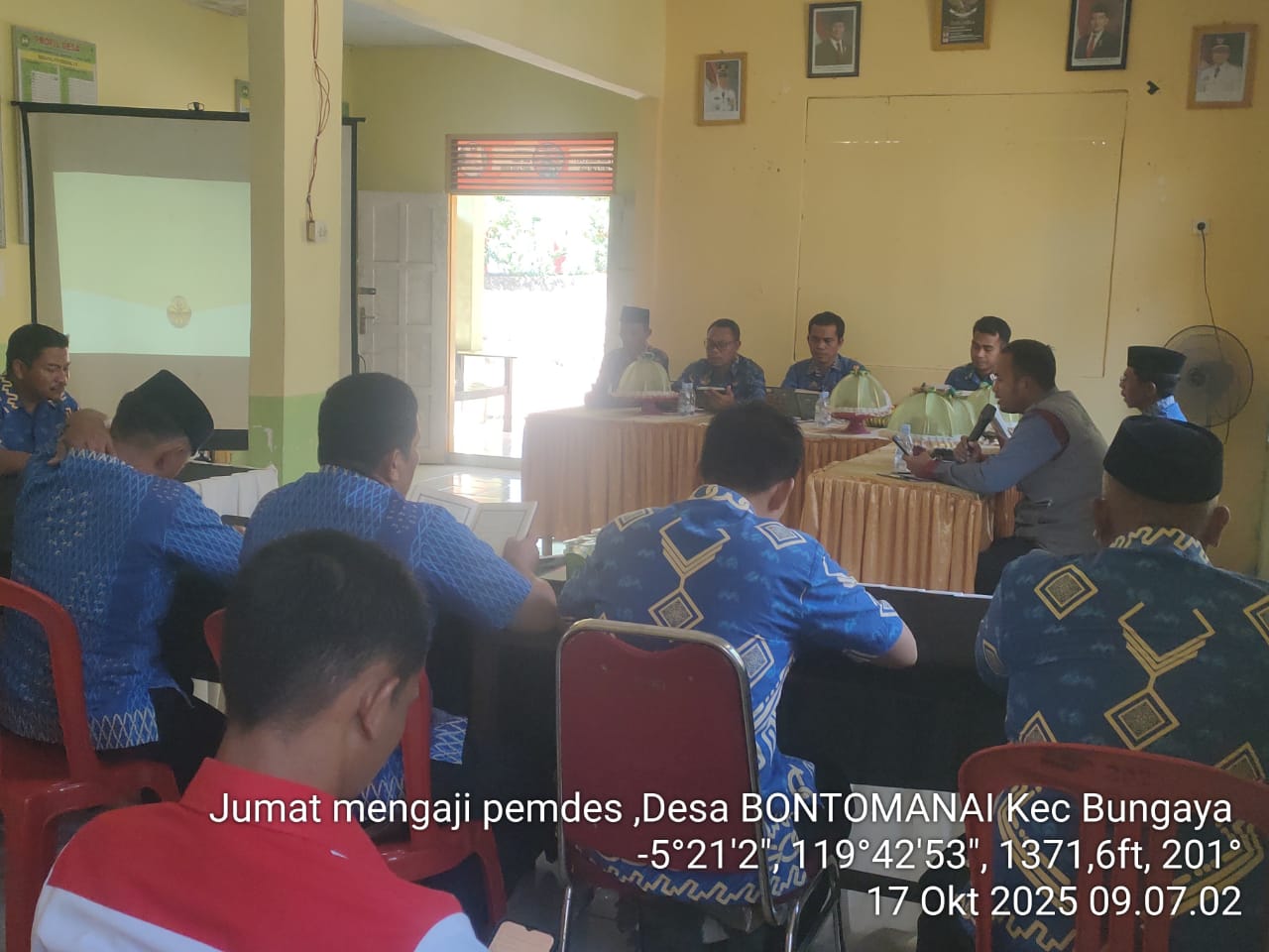 Jum'at, 7 Oktober 2025, kami dari Perangkat Desa Bontomanai beserta BPD Desa Bontomanai Kecamatan bungaya mendukung Program Pencerahan Qalbu Jumat Mengaji yang merupakan salah satu program prioritas Pemerintah Kabupaten (Pemkab) Gowa yang rutin dilaksanakan setiap Jumatnya .